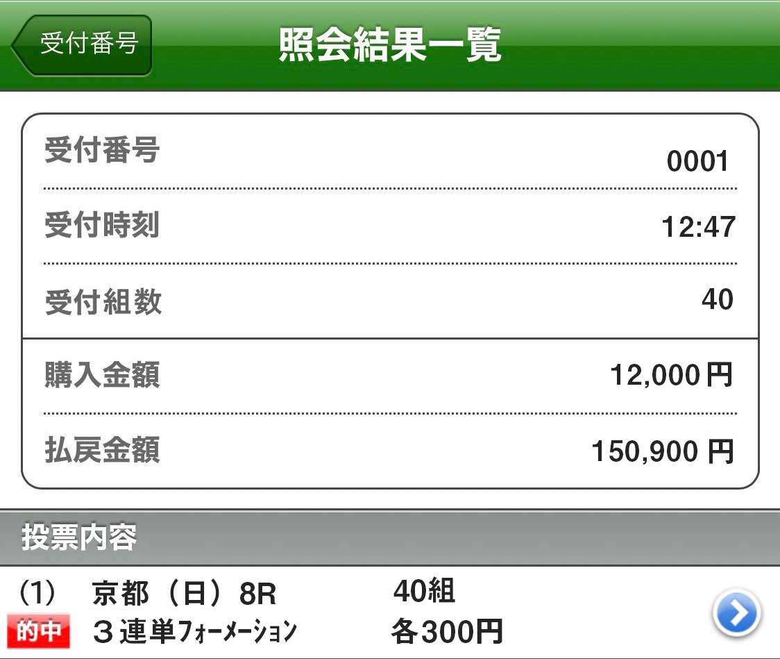 馬券代1点400円にもかかわらず2万100円獲得!